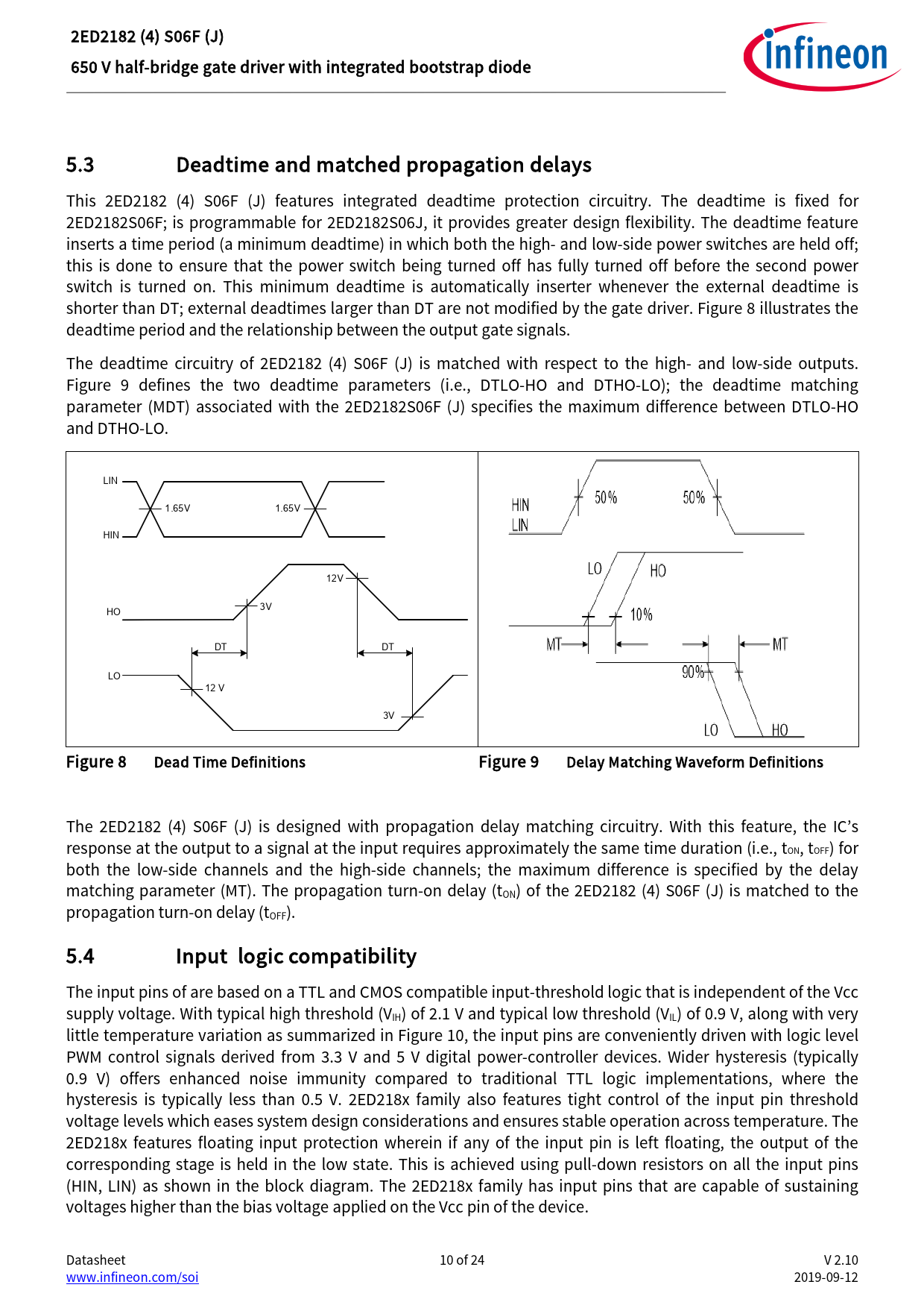 2ED2182 (4) S06F (J) 650 V half-bridge gate driver with integrated bootstrap diode 5.3 Deadtime and matched propagation delays This 2ED2182