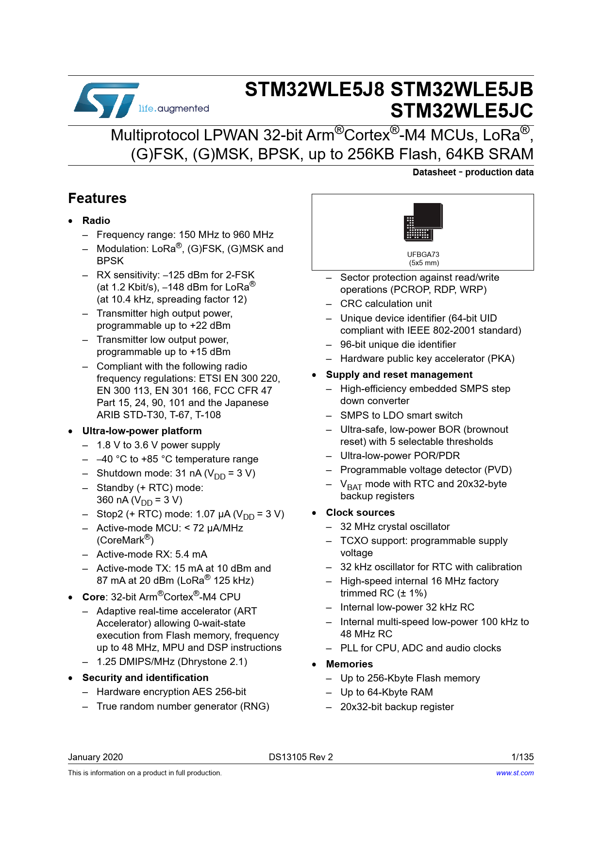 Datasheet STM32WLE5J8, STM32WLE5JB, STM32WLE5JC (STMicroelectronics)