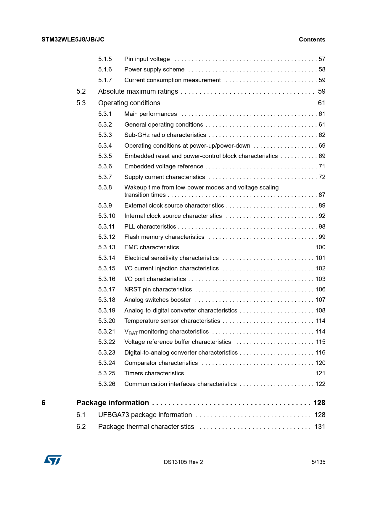 | Seiten / Seite | 135 / 5 — STM32WLE5J8/JB/JC. Contents. Package information . 128 |