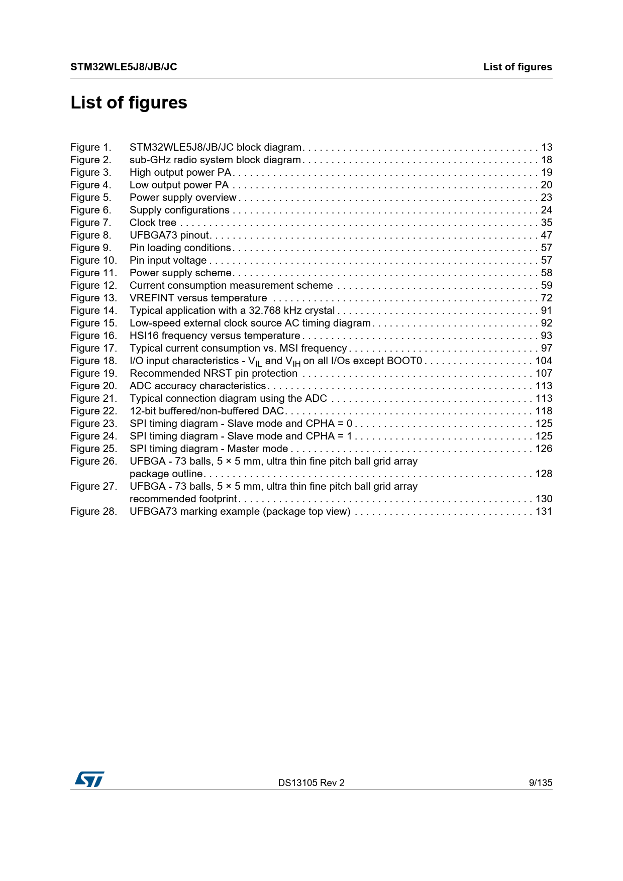 | Seiten / Seite | 135 / 9 — STM32WLE5J8/JB/JC. List of figures |