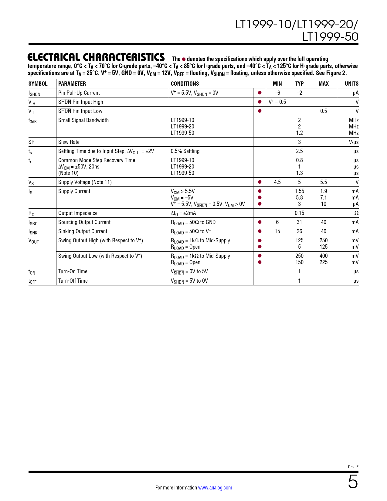 Datasheet LT1999-10, LT1999-20, LT1999-50 (Analog Devices) - 5