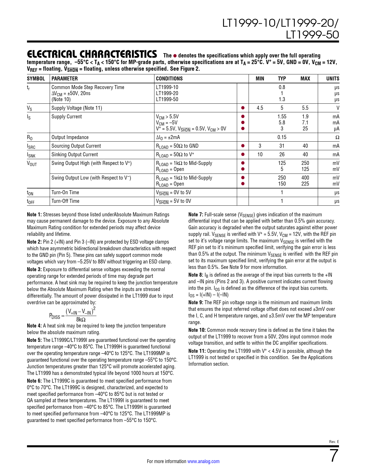 Datasheet LT1999-10, LT1999-20, LT1999-50 (Analog Devices) - 7