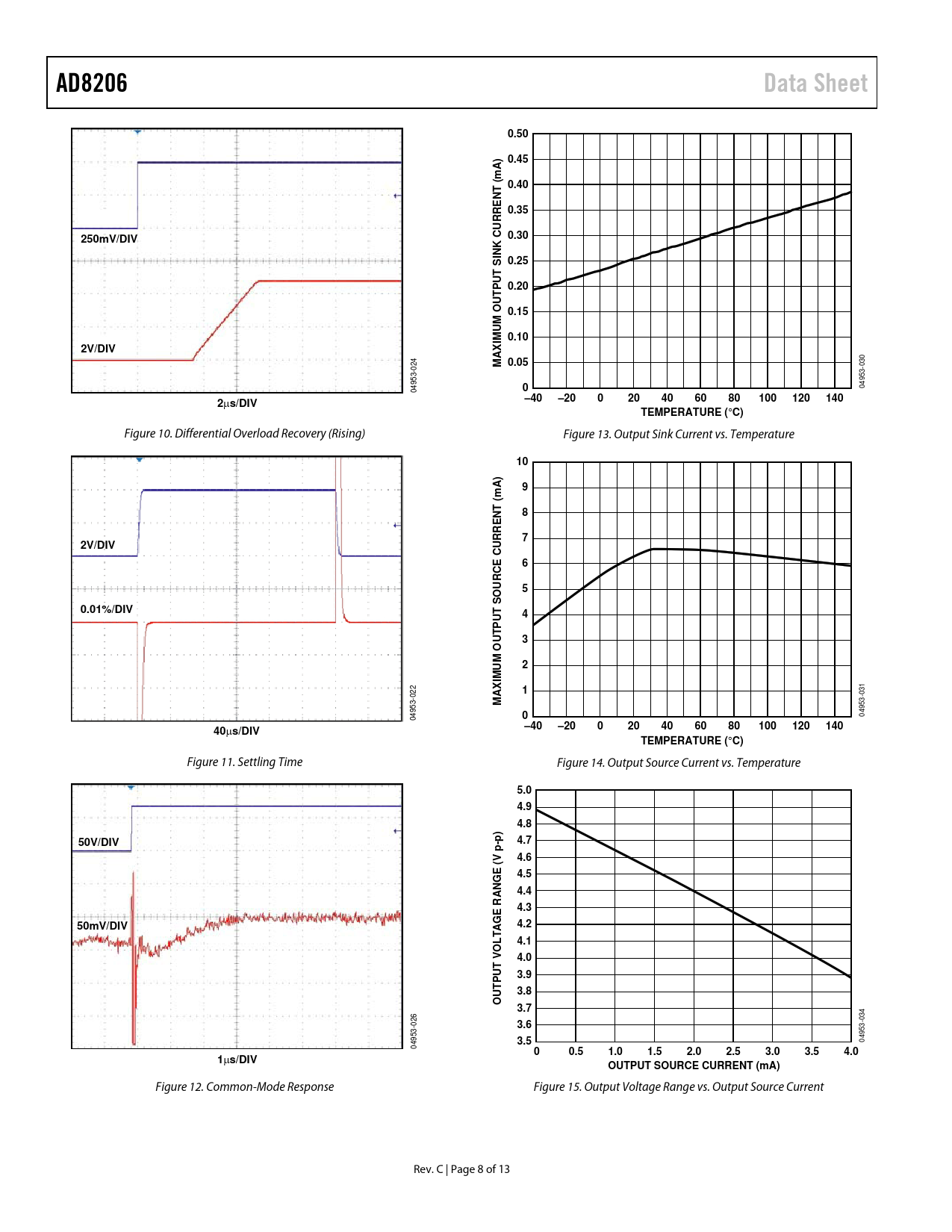 AD8206. Data Sheet. 0.50. 0.45. 0.40. 0.35. 250mV/DIV. 0.30. 0.25. 0.20. 0.15. 0.10. 2V/DIV. MAXIMUM OUTPUT SINK CURRENT (mA) 0.05. –40. –20. 100. 120. 140