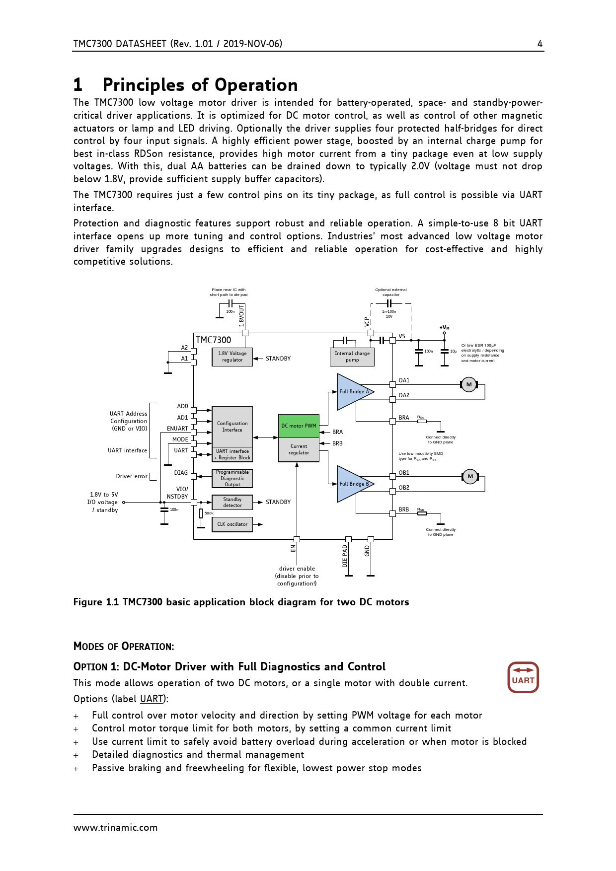 1 Principles of Operation. +VM. Figure 1.1 TMC7300 basic application block diagram for two DC motors. MODES OF OPERATION:
