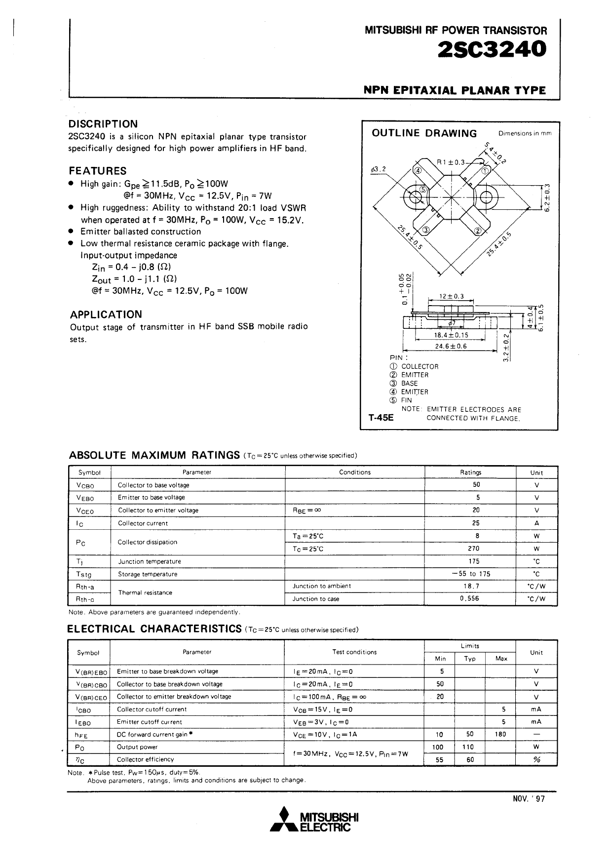 Datasheet 2SC3240 (Mitsubishi Electric)