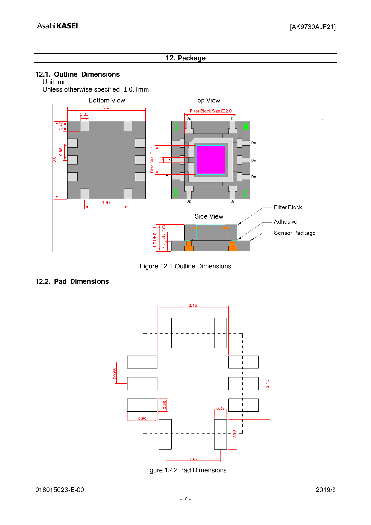 Figure 12.2 Pad Dimensions 018015023-E-00 2019/3 - 7 -