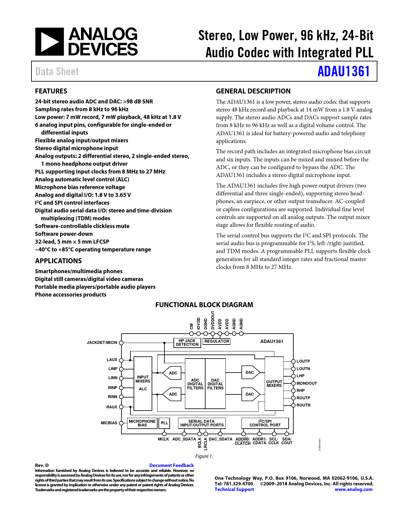 Datasheet ADAU1361 (Analog Devices)