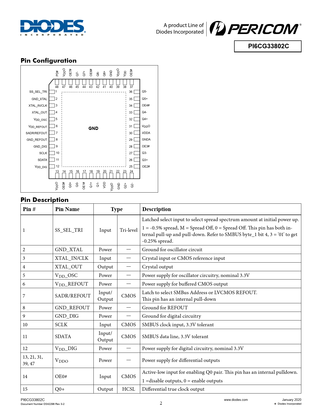PI6CG33802C. Pin Configuration. GND. Pin Description. Pin #. Pin Name. Type. Description
