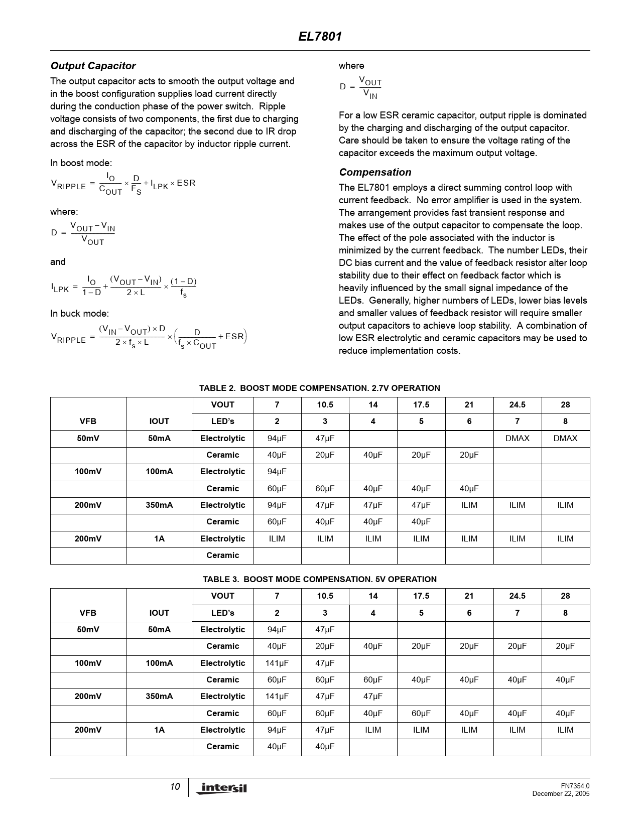 Seiten / Seite16 / 10 — EL7801. Output Capacitor. Compensation. TABLE 2. BOOST MODE COMPENSATION. …