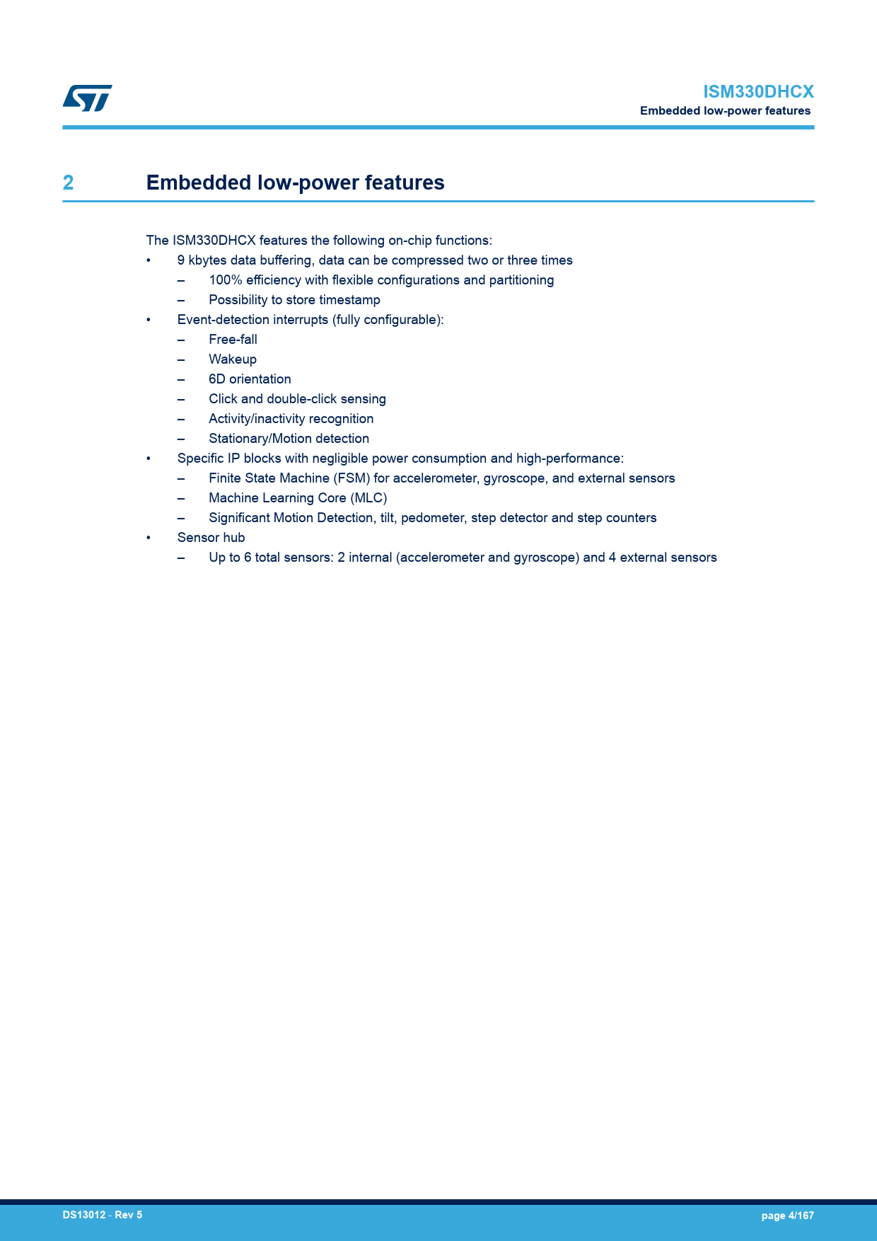 ISM330DHCX. Embedded low-power features. DS13012. Rev 5. page 4/167