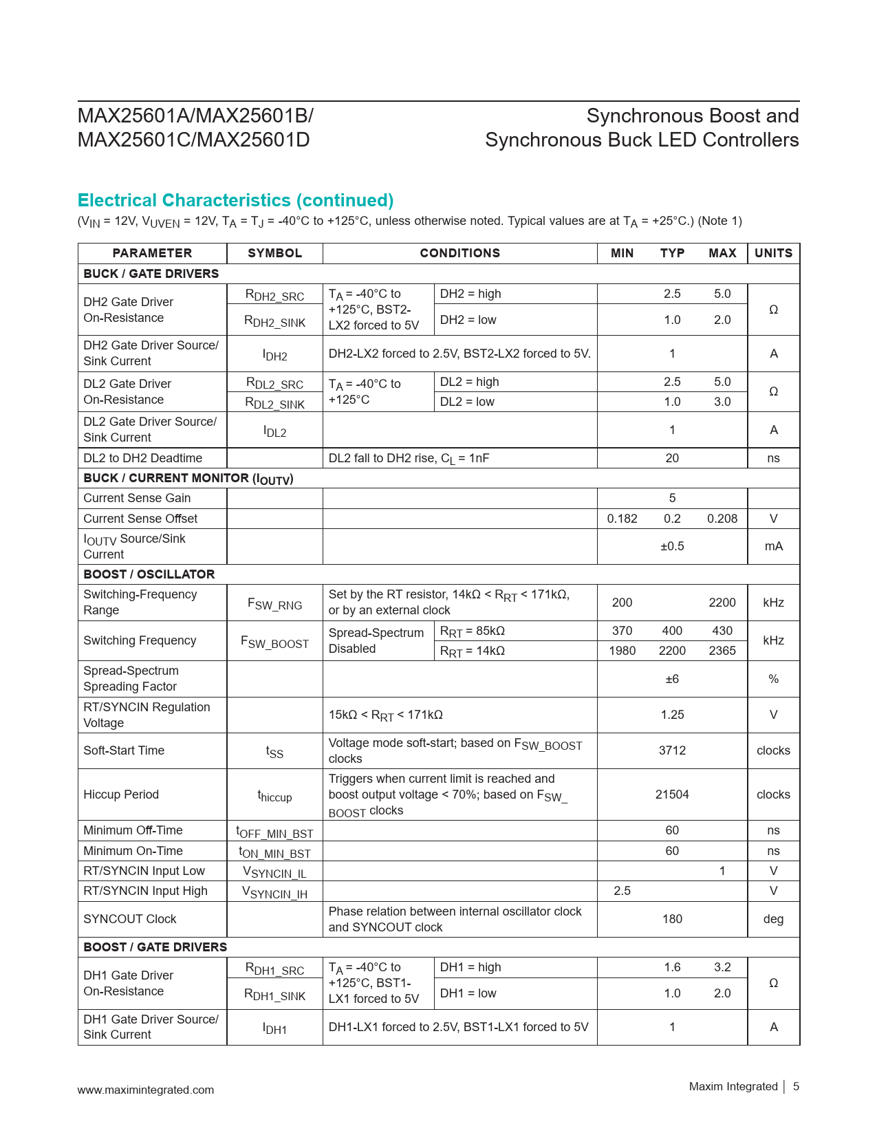 Datasheet MAX25601A, MAX25601B, MAX25601C, MAX25601D (Maxim) - 5