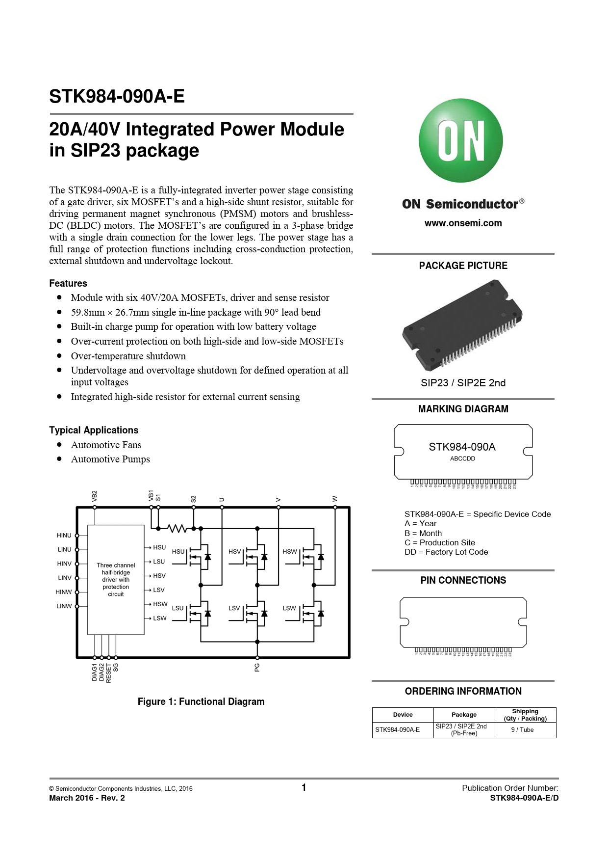 The STK984-090A-E is a fully-integrated inverter power stage consisting