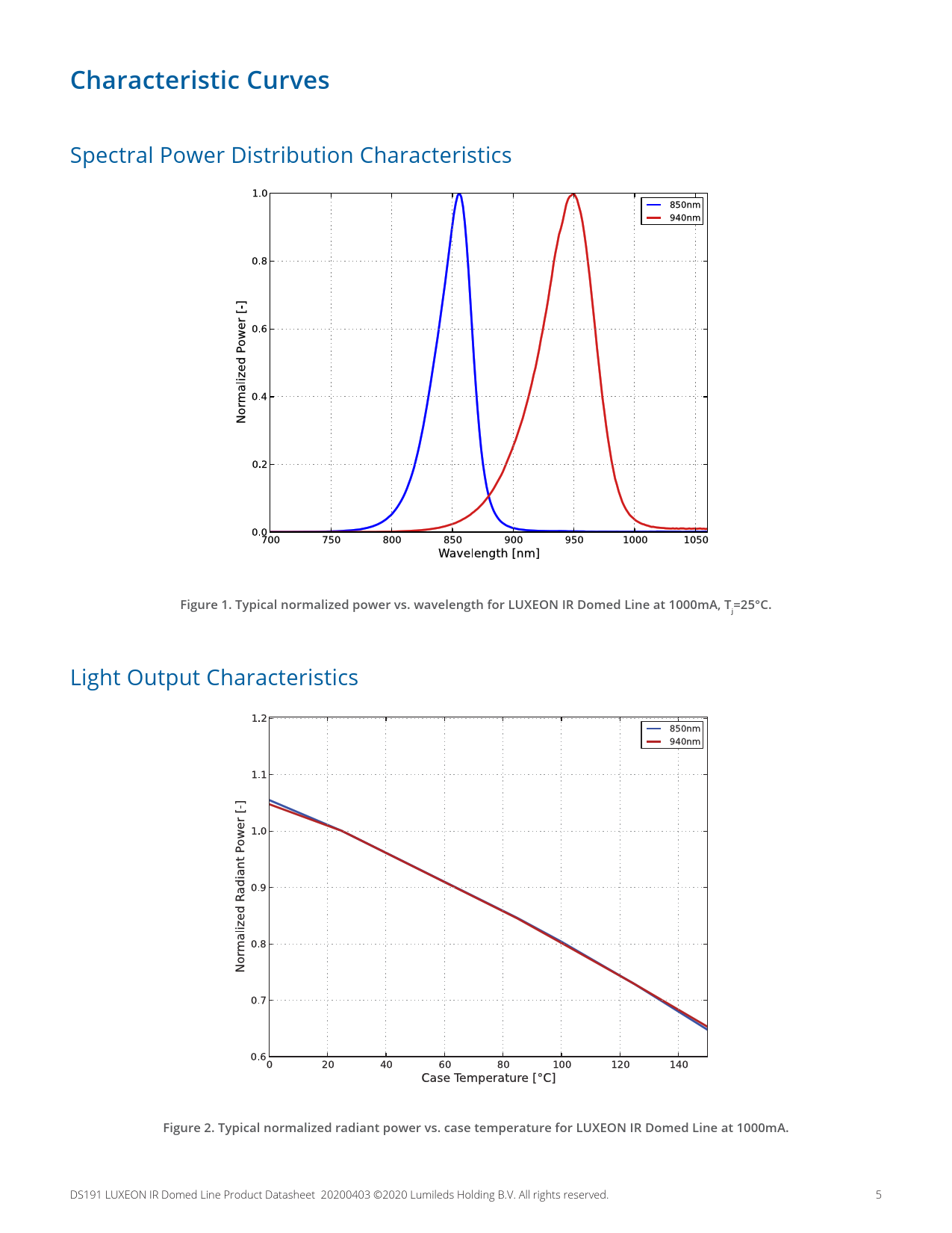 Characteristic Curves. Figure 1. Typical normalized power vs. wavelength for LUXEON IR Domed Line at 1000mA, T =25°C