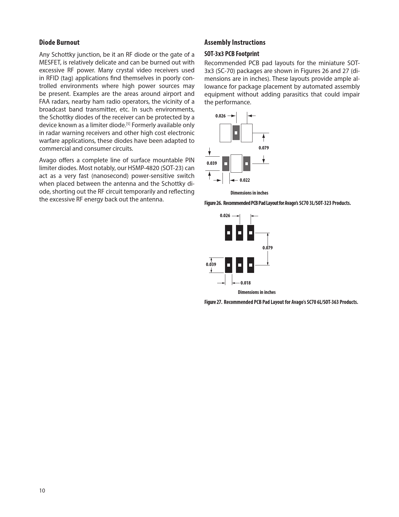 Seiten / Seite15 / 10 — Diode Burnout. Assembly Instructions. SOT-3x3 PCB Footprint. 0.026. …
