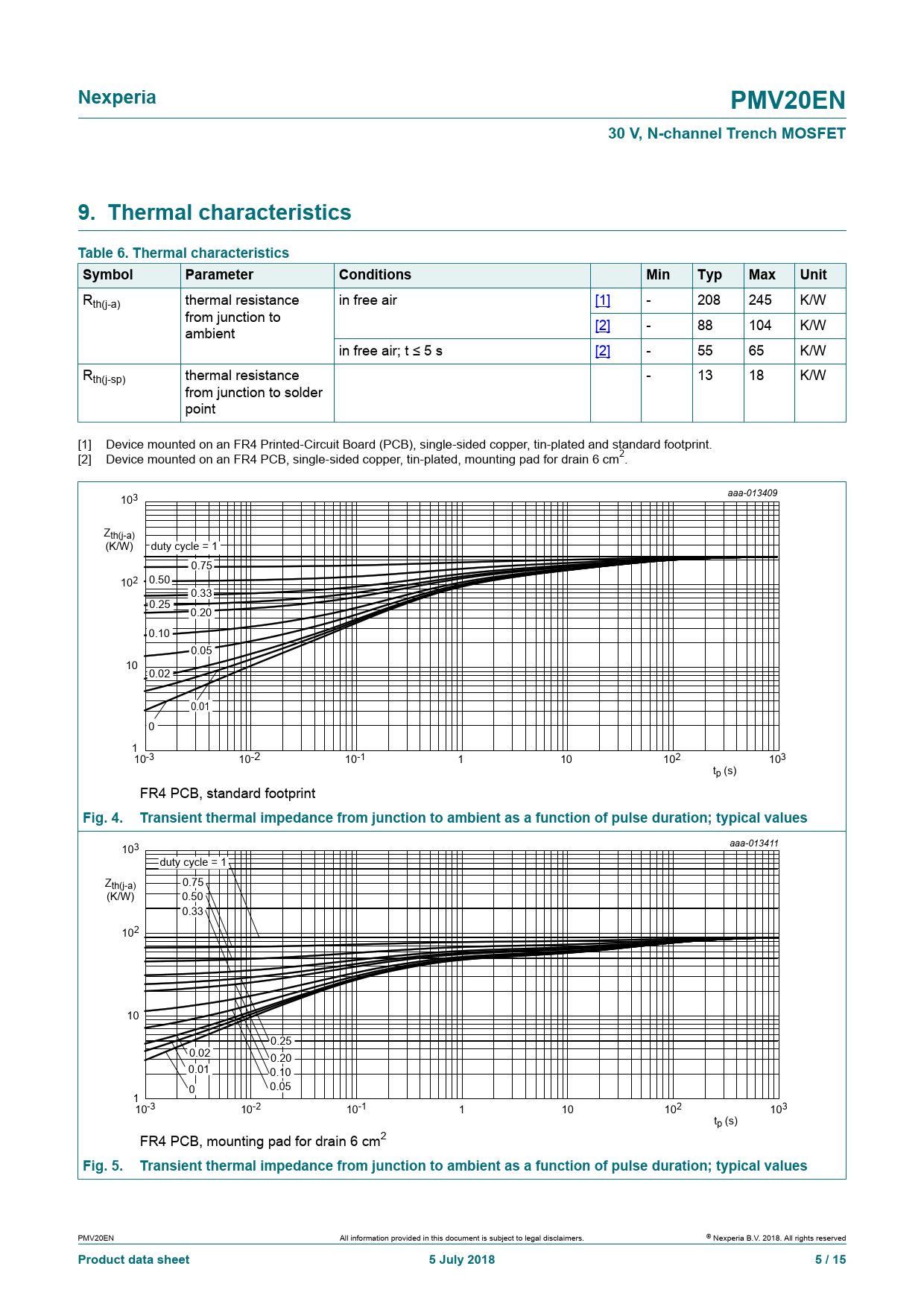 | Seiten / Seite | 15 / 5 — Nexperia. PMV20EN. 30 V, N-channel Trench MOSFET. 9. Thermal … |