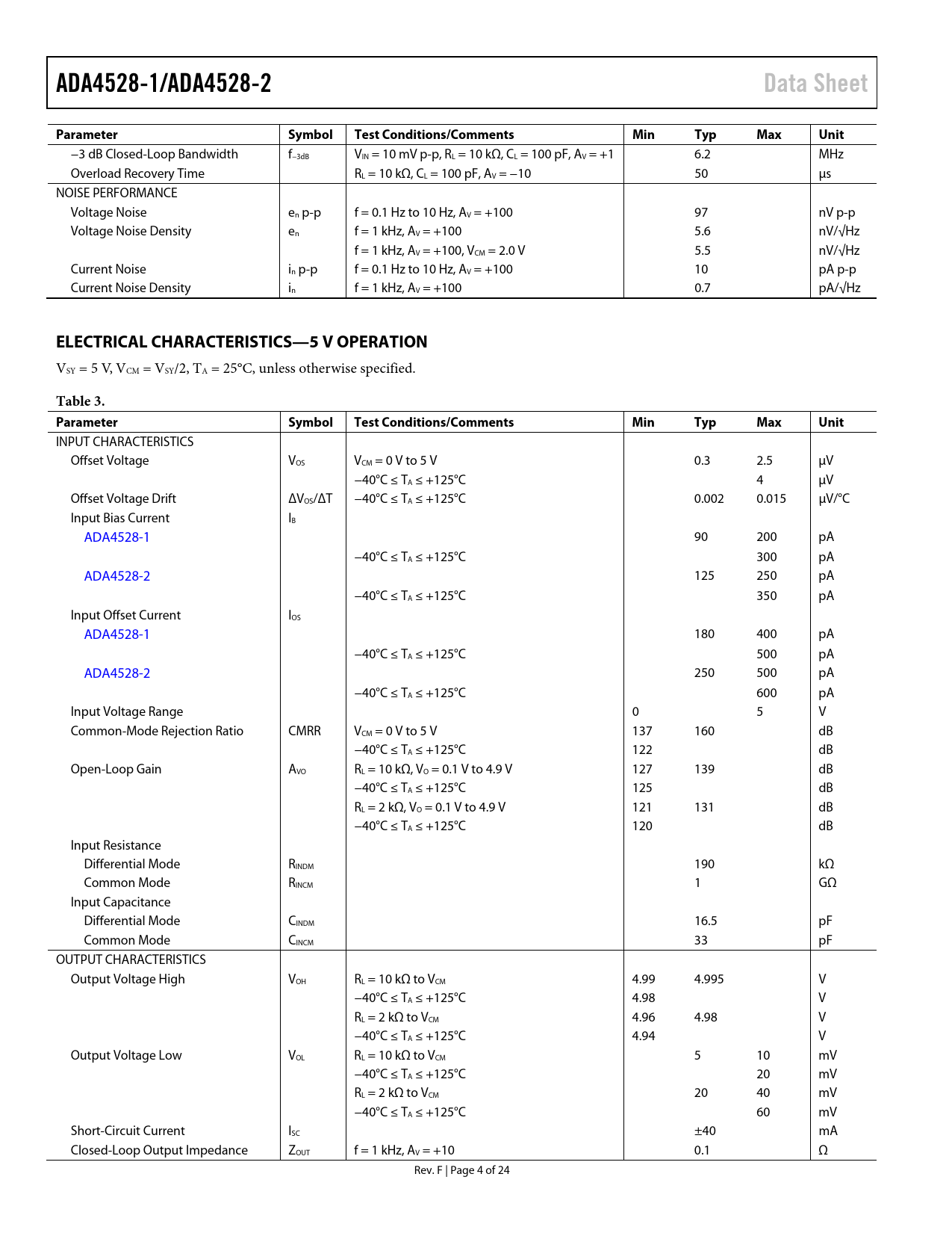 Seiten / Seite24 / 4 — ADA4528-1/ADA4528-2. Data Sheet. Parameter. Symbol. Test …
