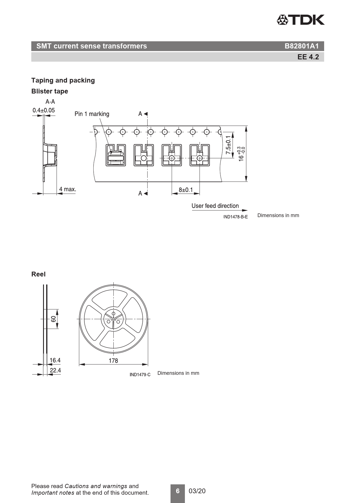 SMT current sense transformers. B82801A1. EE 4.2. Taping and packing Blister tape. Reel