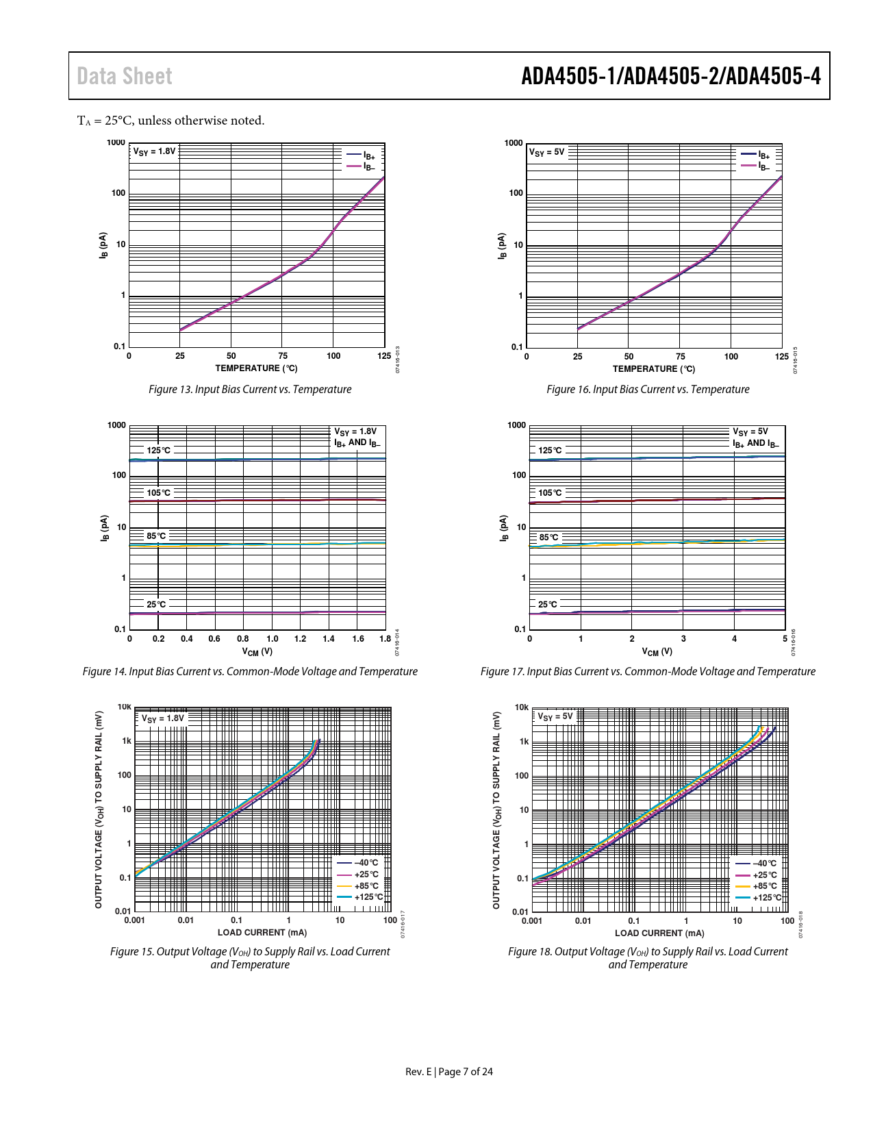 Data Sheet. ADA4505-1/ADA4505-2/ADA4505-4. 1000. VSY = 1.8V. SY = 5V. IB+. IB–. 100. I B. 0.1. 125. TEMPERATURE (°C). VSY = 5V. IB+ AND IB–. 125°C