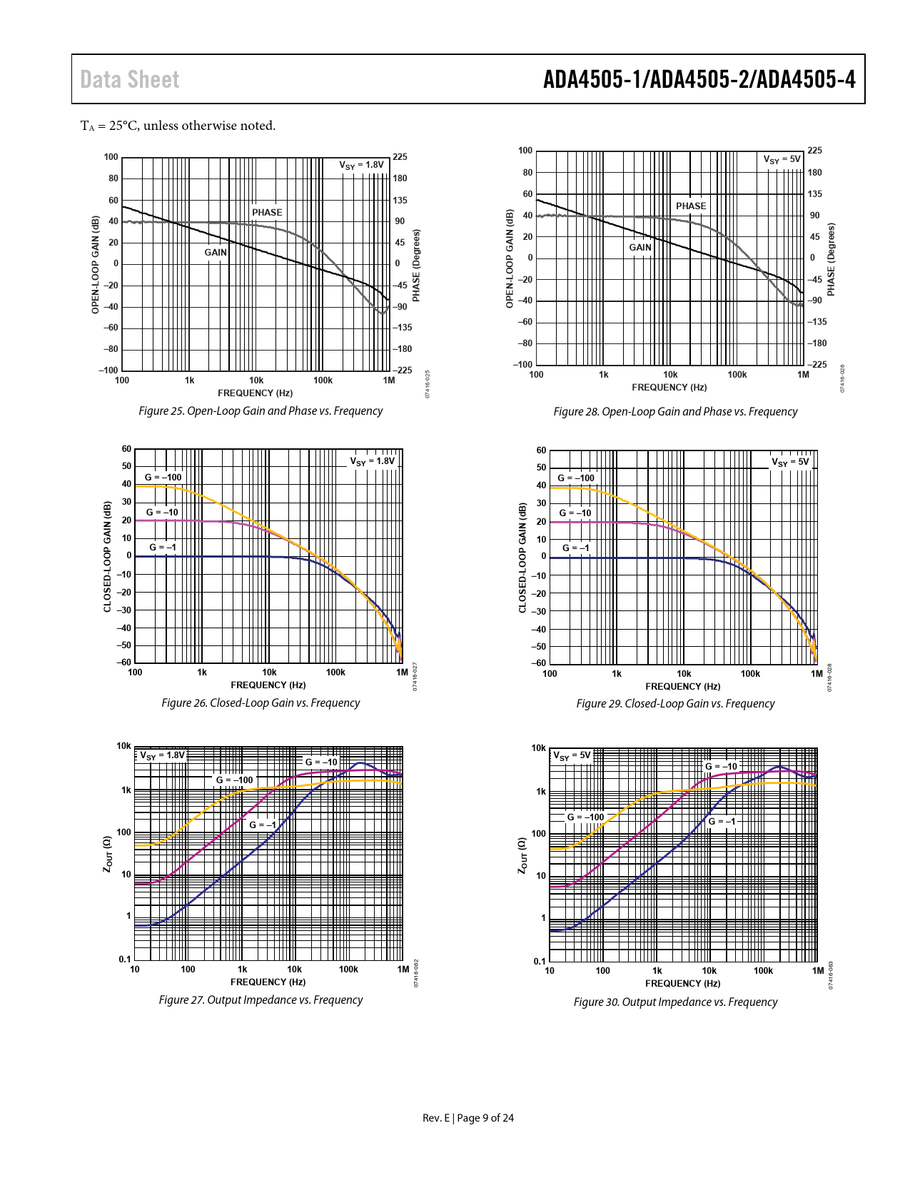 Data Sheet ADA4505-1/ADA4505-2/ADA4505-4 100 225 SY = 5V SY = 1.8V 180 135 PHASE rees) GAIN OOP E S -L –20 –45 –40 –90 –60 –135 –80 –180