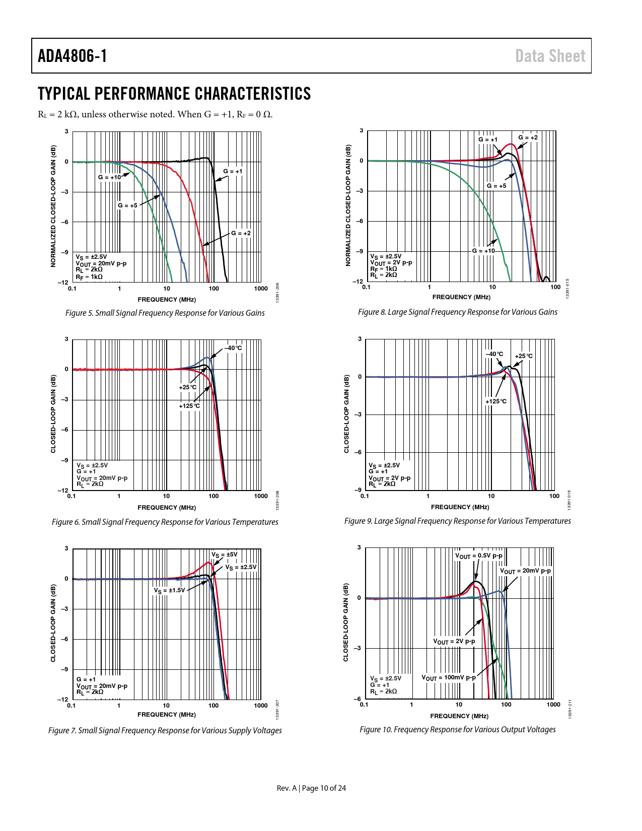 ADA4806-1. Data Sheet. TYPICAL PERFORMANCE CHARACTERISTICS. G = +2. G = +1. N (. G = +10. G = +5. -LOO. LOS. LIZE. S = ±2.5V. OUT = 20mV p-p