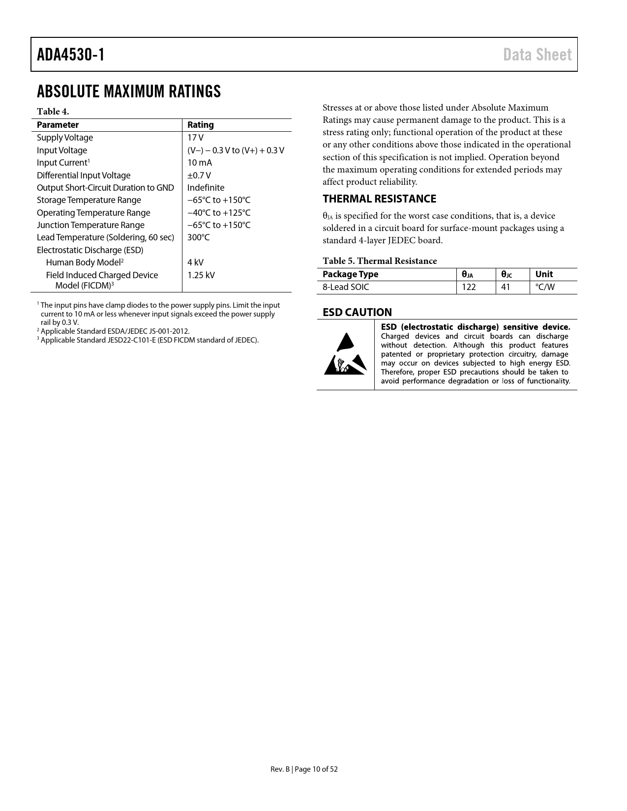 Seiten / Seite52 / 10 — ADA4530-1. Data Sheet. ABSOLUTE MAXIMUM RATINGS Table 4. Parameter. …