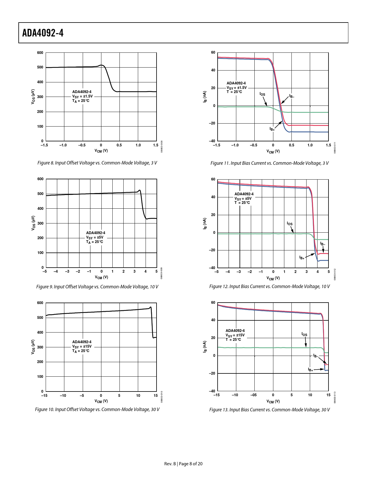 08803- Figure 9. Input Offset Voltage vs. Common-Mode Voltage, 10 V Figure 12. Input Bias Current vs. Common-Mode Voltage, 10 V