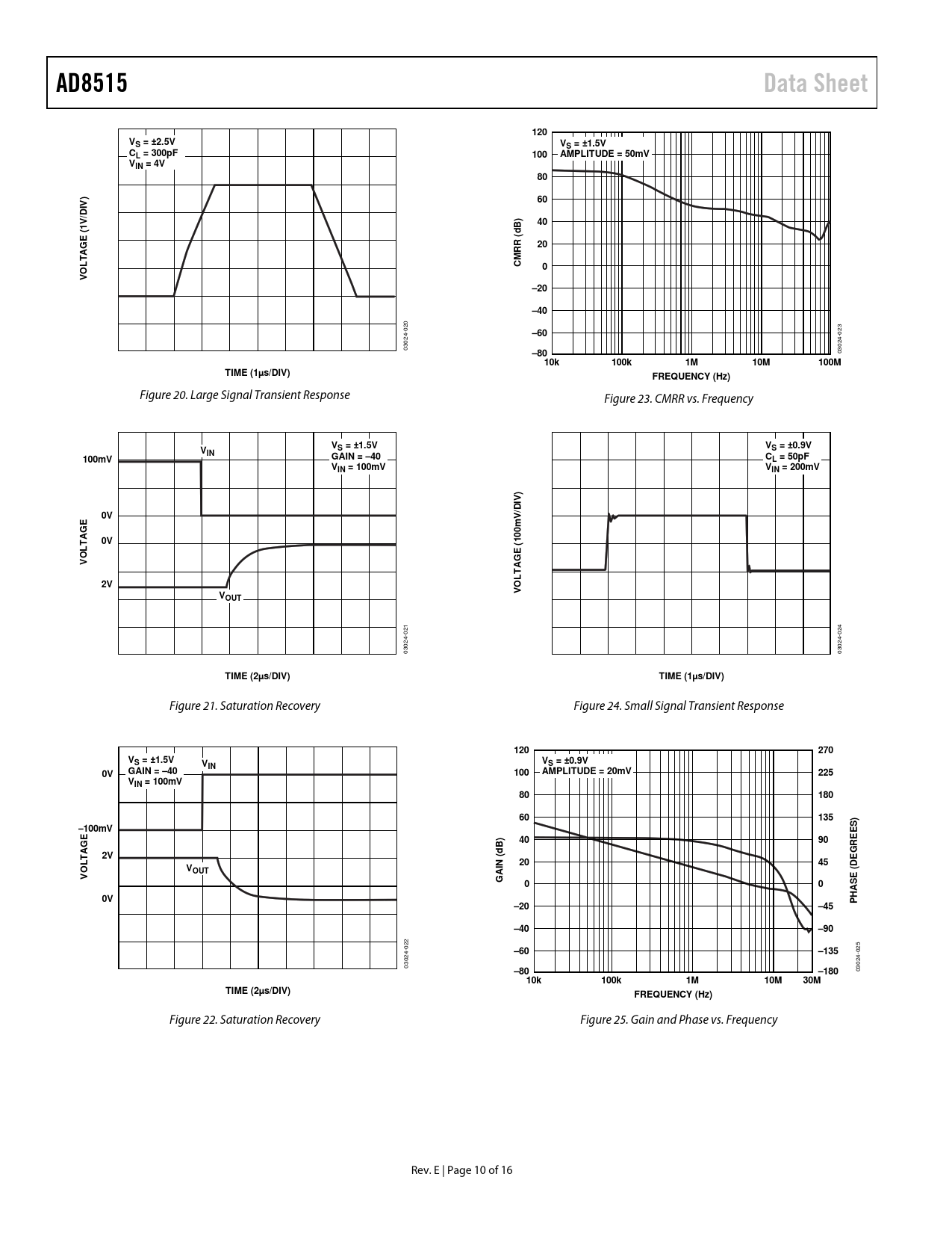 AD8515. Data Sheet. 120. VS = ±2.5V. VS = ±1.5V. CL = 300pF. 100. AMPLITUDE = 50mV. VIN = 4V. IV /D V. RR (. OLTA V. –20. –40. –60. –80. 10k. 100k. 10M. 100M