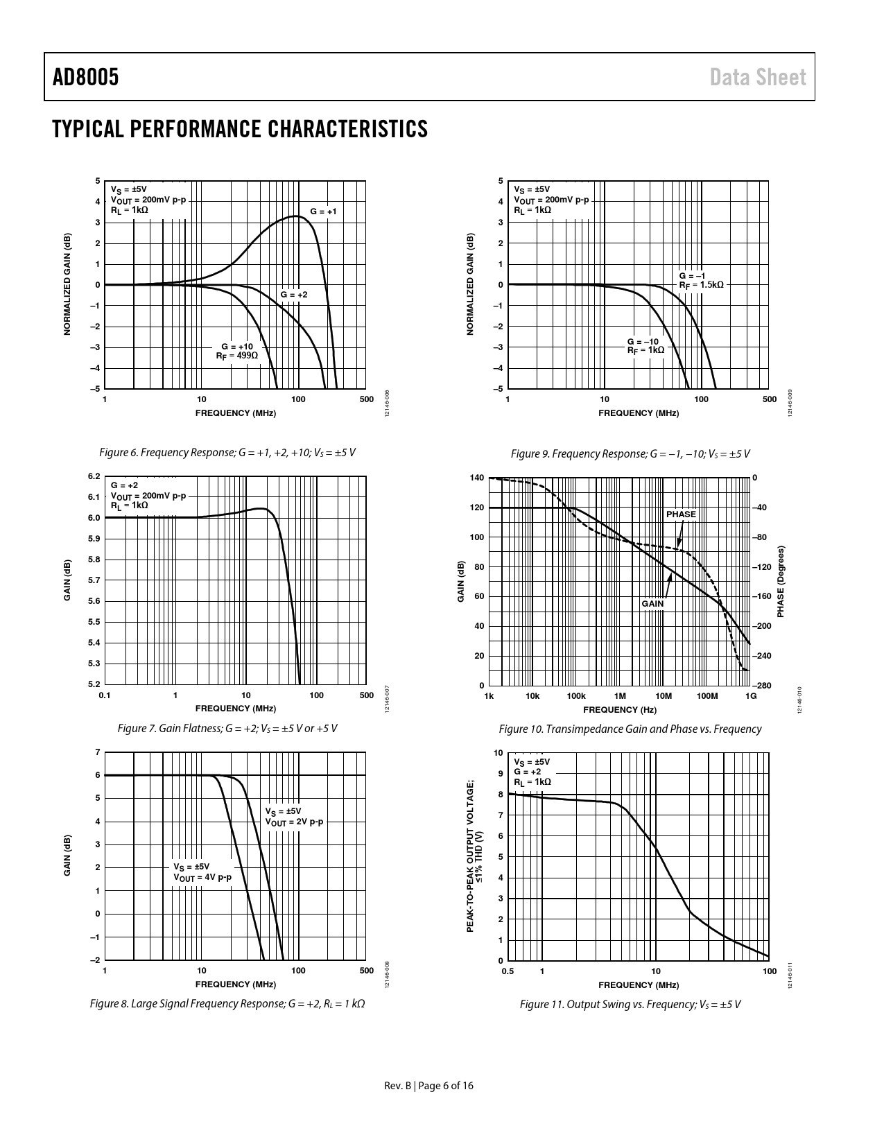 AD8005. Data Sheet. TYPICAL PERFORMANCE CHARACTERISTICS. VS = ±5V. VOUT = 200mV p-p. RL = 1kΩ. G = +1. N (. G = –1. D G. RF = 1.5kΩ. G = +2