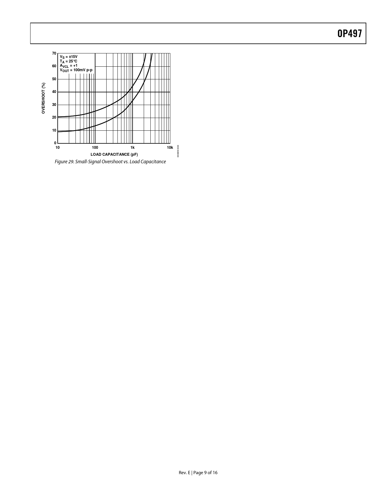 OP497. VS = ±15V TA = 25°C. AVCL = +1 VOUT = 100mV p-p. ) % ( T. O O SH. VER O. 100. 10k. LOAD CAPACITANCE (pF)