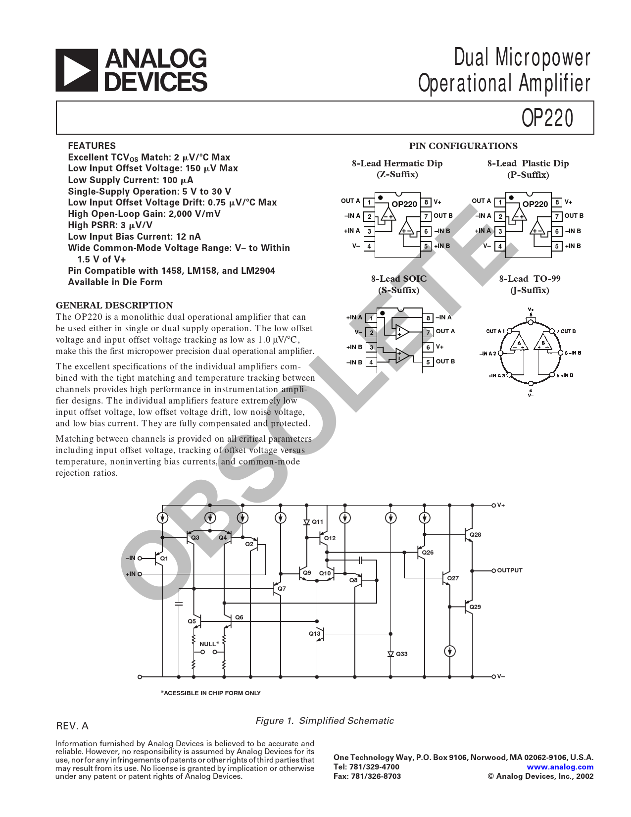 Datasheet OP220 (Analog Devices)