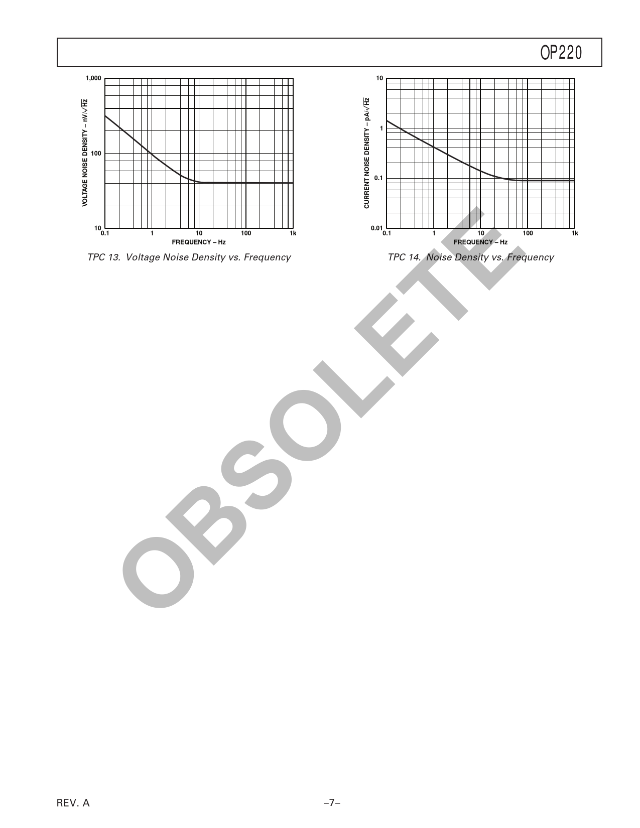 OP2201,00010HzHz11000.1GE NOISE DENSITY – nV/LTA VOCURRENT NOISE DENSITY – pA/100.010.11101001k0.11101001kFREQUENCY – HzFREQUENCY – Hz TPC 13. Voltage Noise Density vs. Frequency TPC 14. Noise Density vs. Frequency OBSOLETE REV. A –7– Document Outline FEATURES GENERAL DESCRIPTION PIN CONFIGURATIONS SPECIFICATIONS ABSOLUTE MAXIMUM RATINGS DIE CHARACTERISTICS ORDERING GUIDE WAFER TEST LIMITS Typical Performance Characteristics INSTRUMENTATION AMPLIFIER APPLICATIONS OF THE OP220 Two Op Amp Configuration THREE OP AMP CONFIGURATION OUTLINE DIMENSIONS Revision History