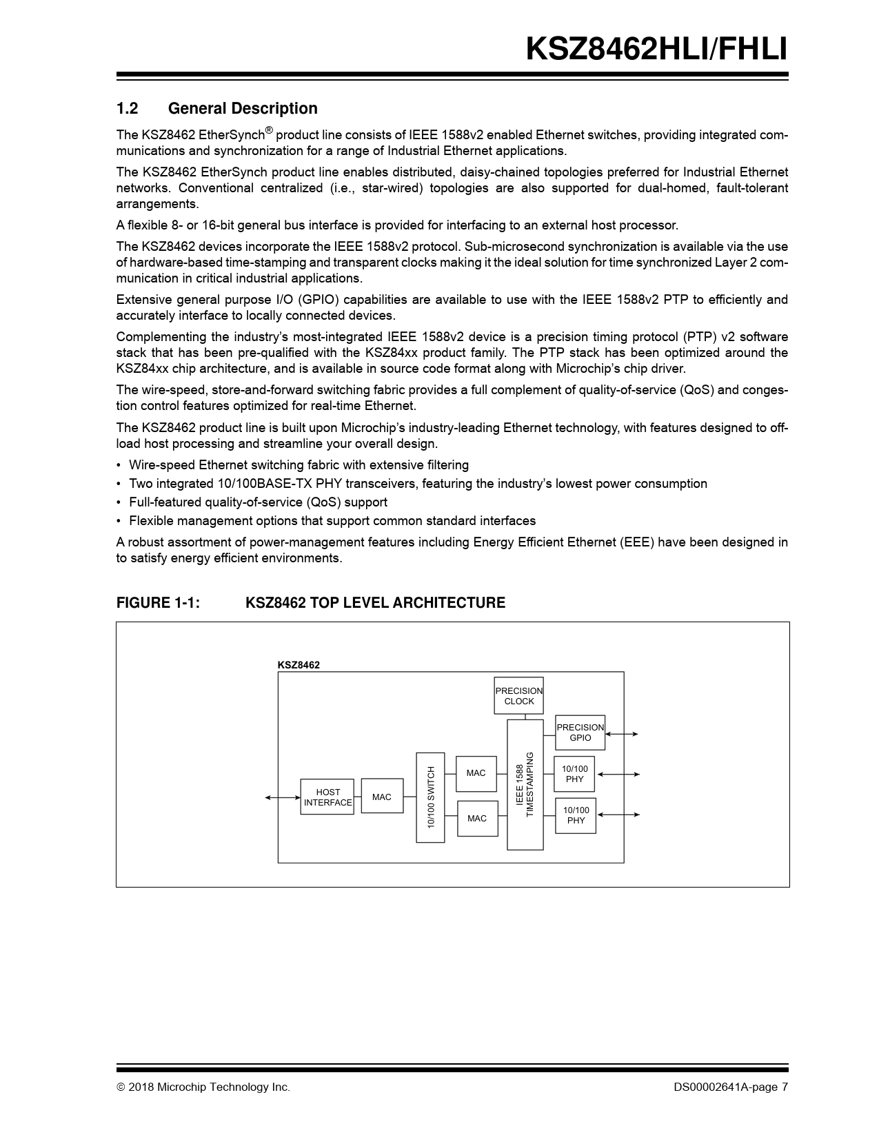 KSZ8462HLI/FHLI. 1.2. General Description. FIGURE 1-1:. KSZ8462 TOP LEVEL ARCHITECTURE. KSZ8462