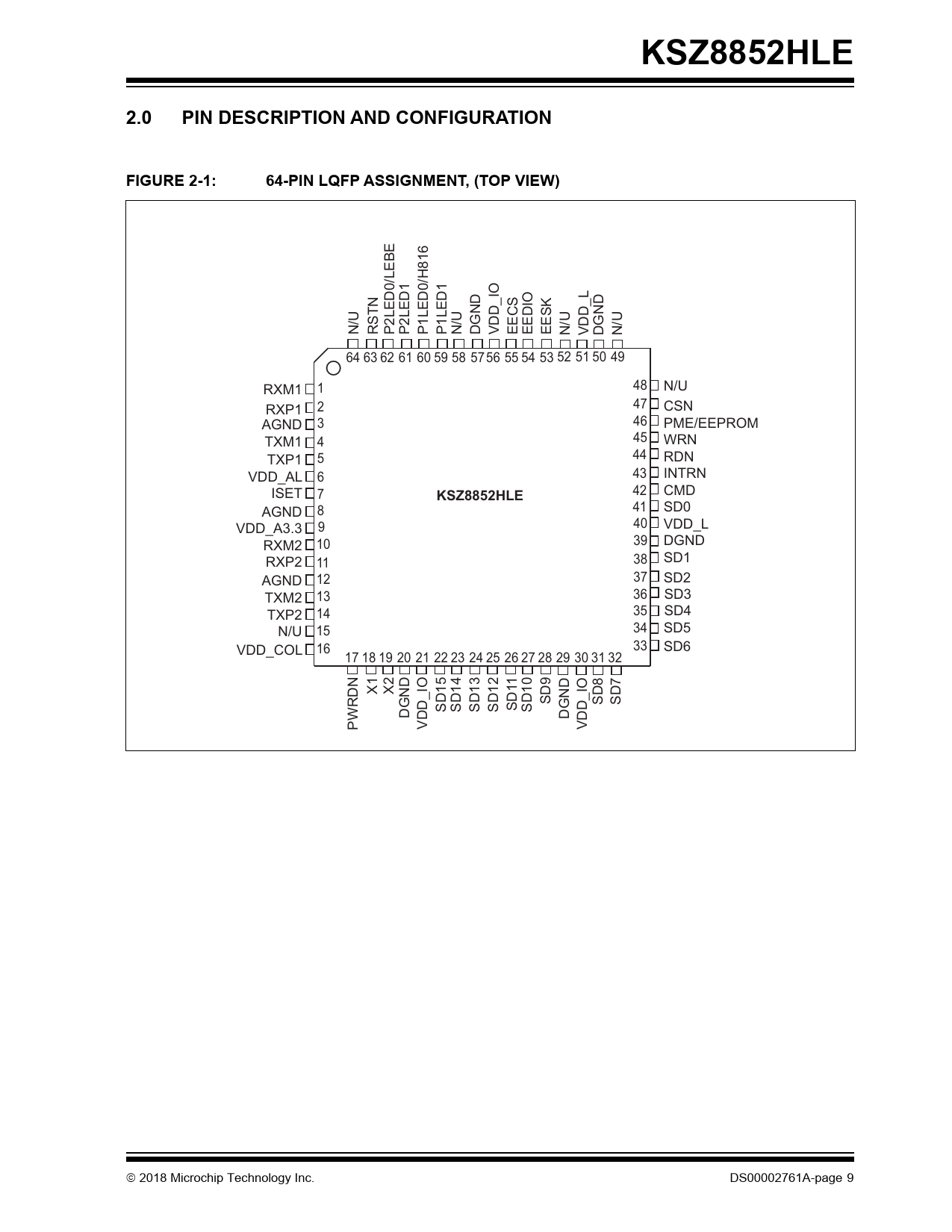 | Seiten / Seite | 170 / 9 — KSZ8852HLE. 2.0. PIN DESCRIPTION AND CONFIGURATION. FIGURE 2-1:. 64-PIN … |