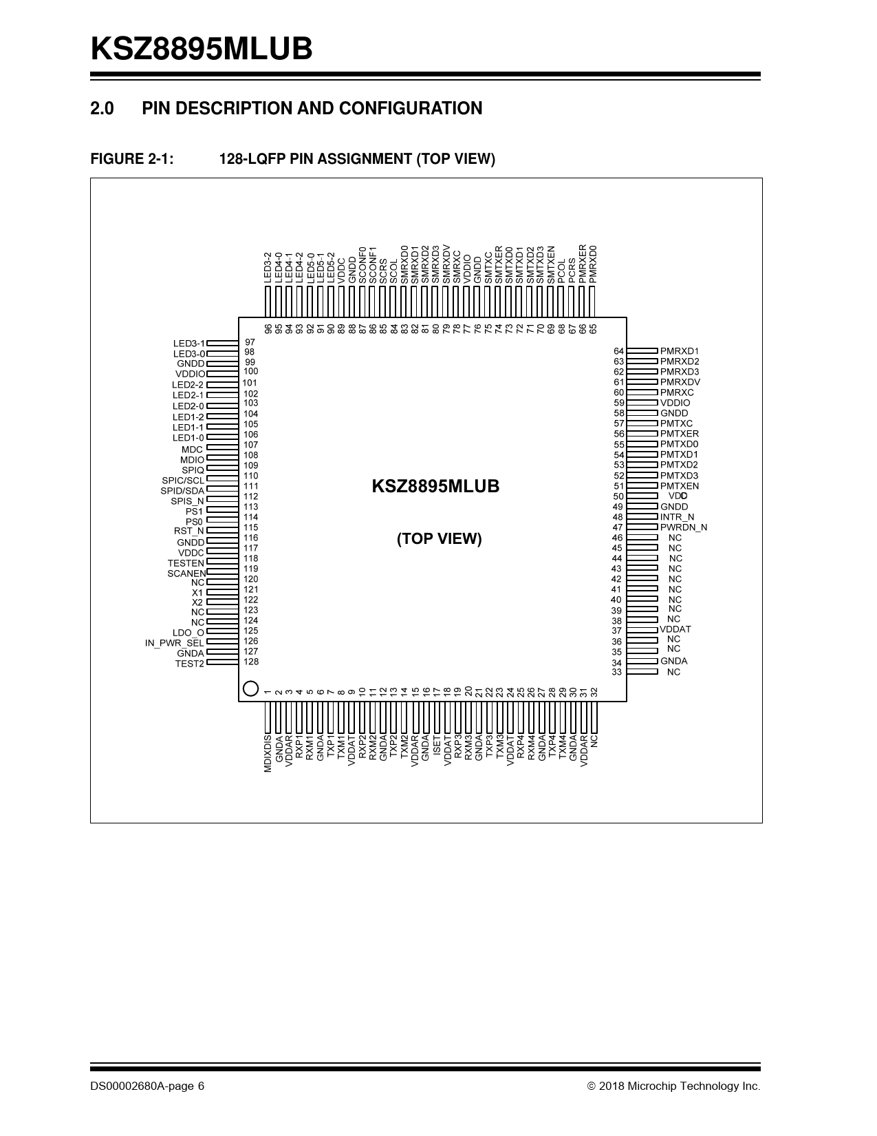 KSZ8895MLUB. 2.0. PIN DESCRIPTION AND CONFIGURATION. FIGURE 2-1:. 128-LQFP PIN ASSIGNMENT (TOP VIEW). (TOP VIEW)