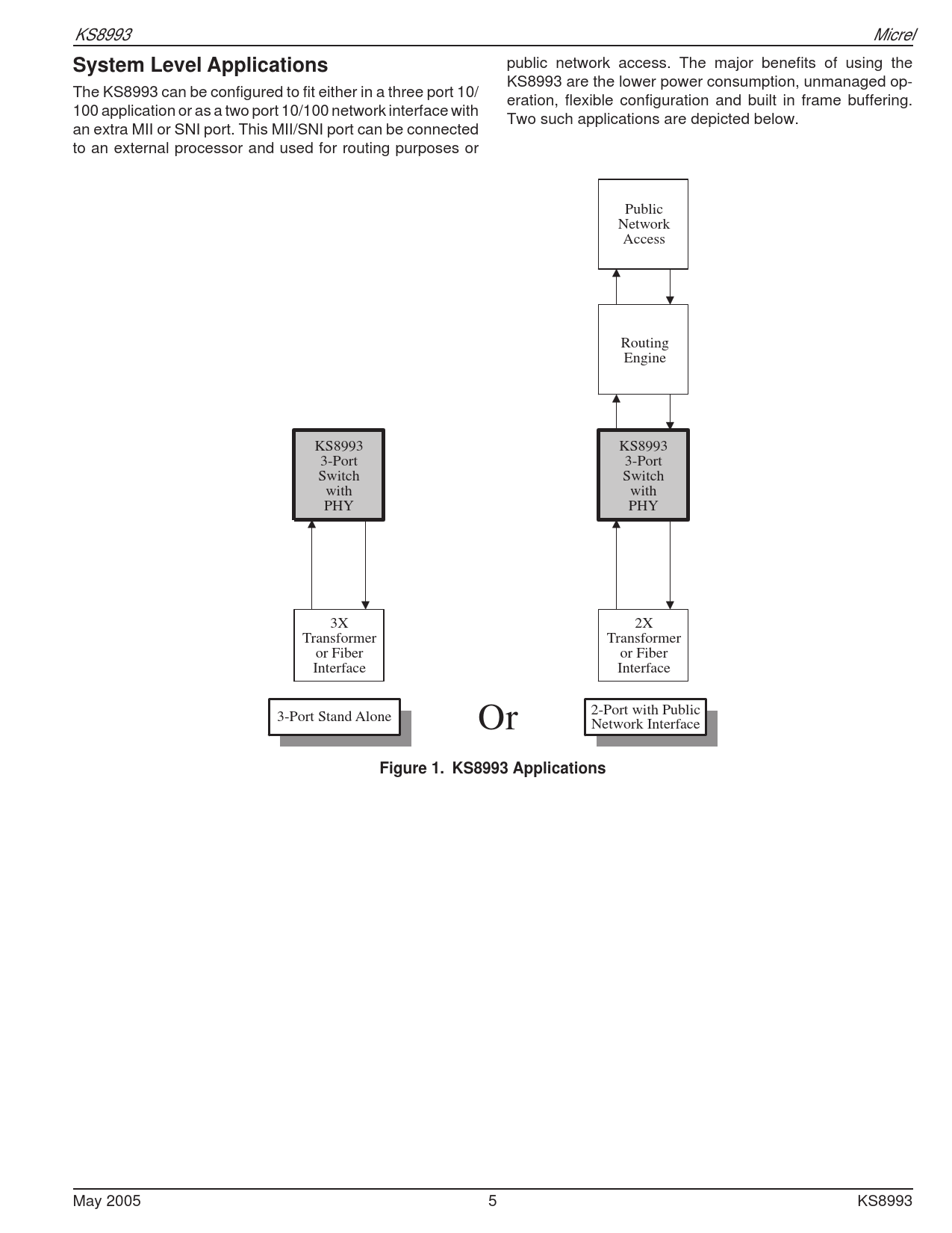 System Level Applications. Figure 1. KS8993 Applications