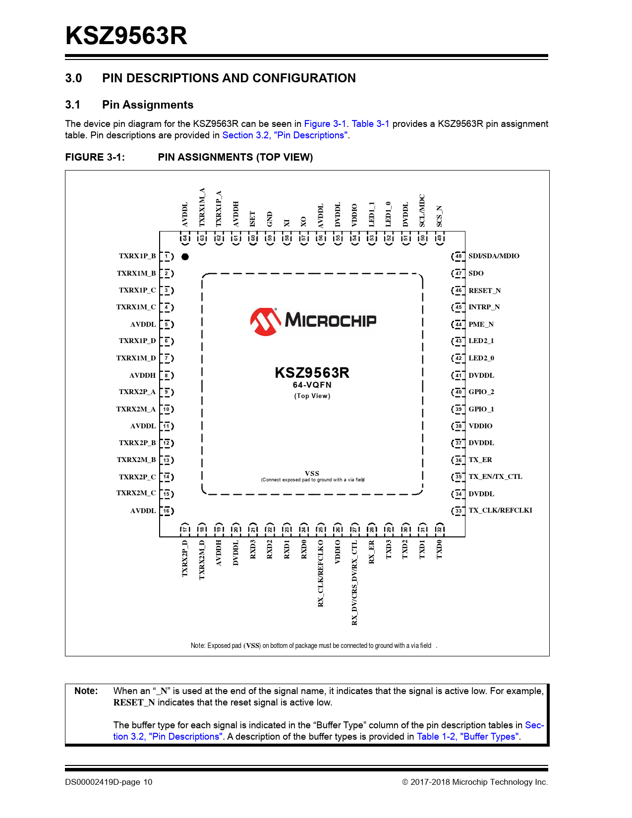 KSZ9563R. 3.0. PIN DESCRIPTIONS AND CONFIGURATION. 3.1. Pin Assignments. FIGURE 3-1:. PIN ASSIGNMENTS (TOP VIEW). 1_1. 1_0. VDDL. AVDDL