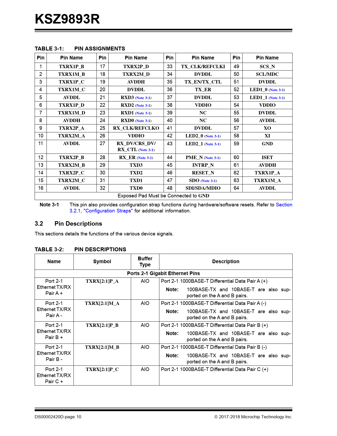 TABLE 3-2: PIN DESCRIPTIONS Buffer Name Symbol Description Type Ports 2-1 Gigabit Ethernet Pins