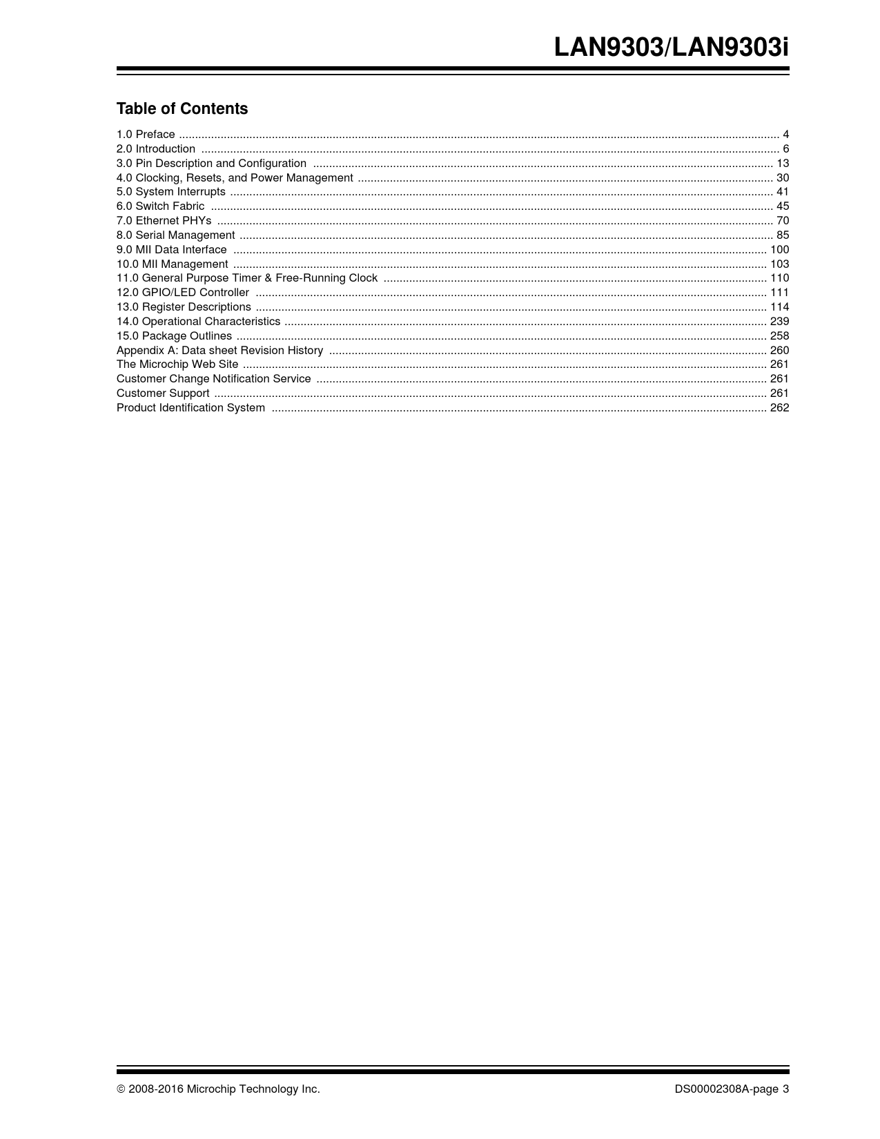 | Seiten / Seite | 264 / 3 — LAN9303/LAN9303i. Table of Contents |