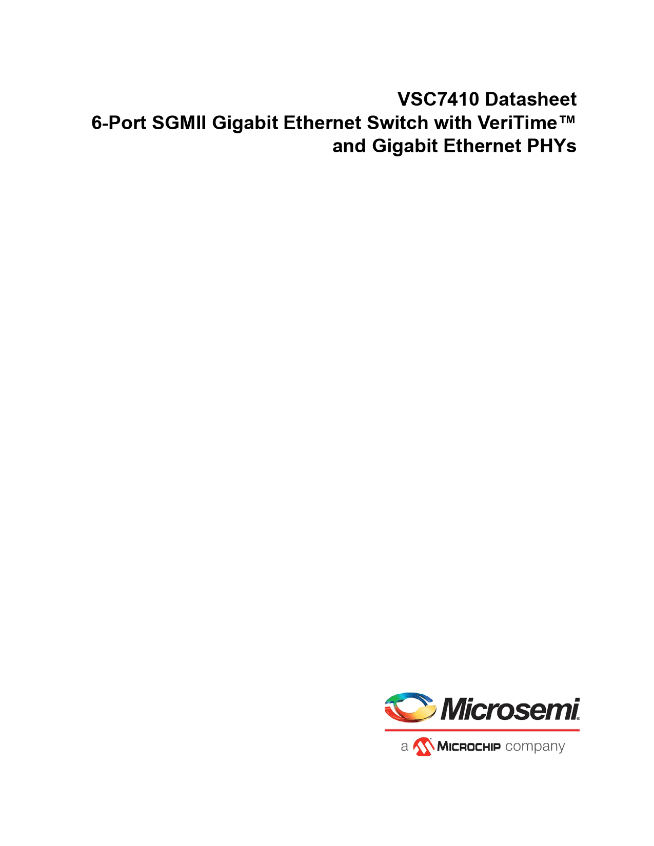 VSC7410 Datasheet. 6-Port SGMII Gigabit Ethernet Switch with VeriTime™. and Gigabit Ethernet PHYs