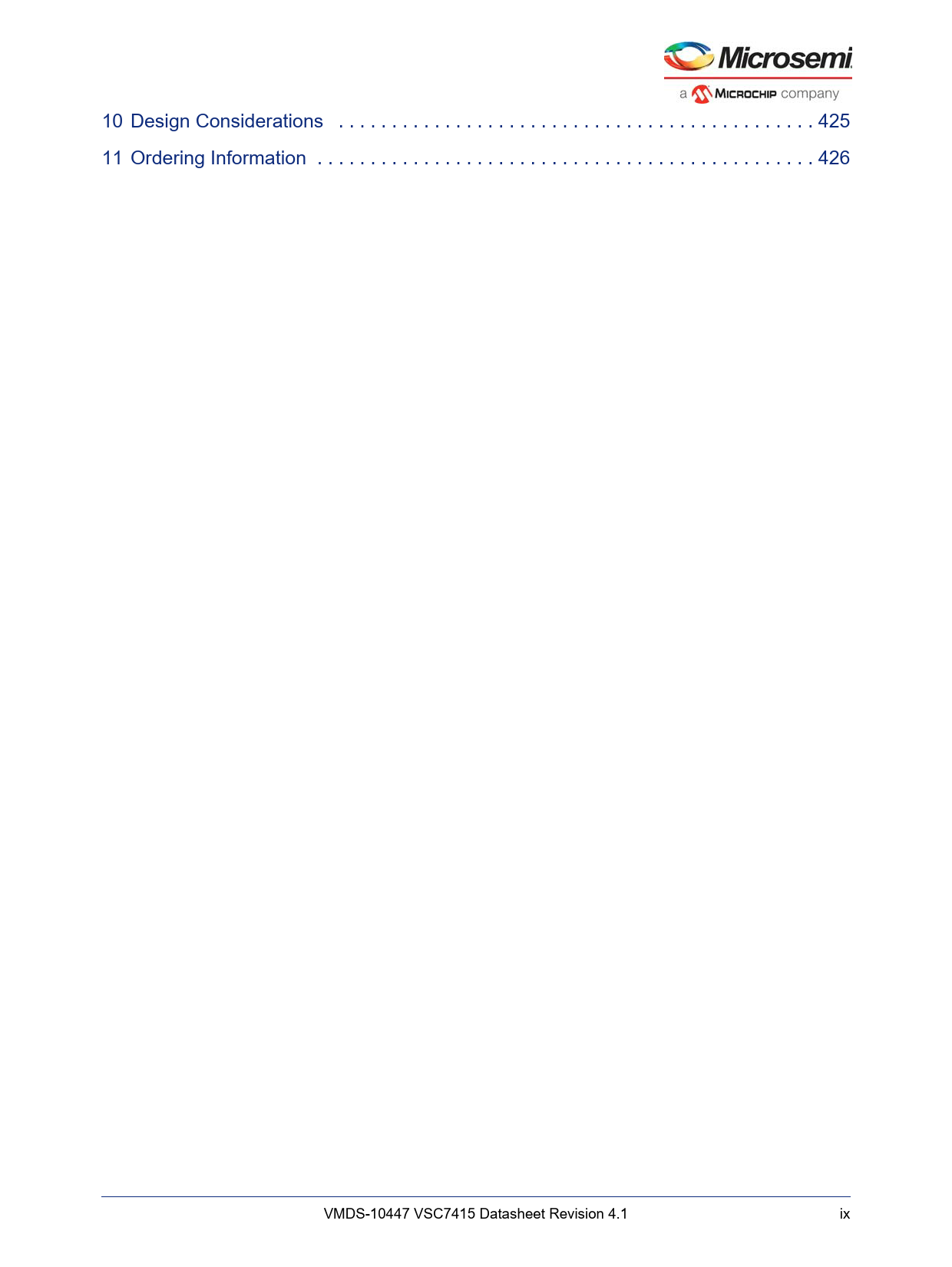link. to. page. 443. link. to. page. 444. 10. Design. Considerations. . 425. 11. Ordering. Information. . 426. VMDS-10447. VSC7415. Datasheet. Revision. 4.1. ix