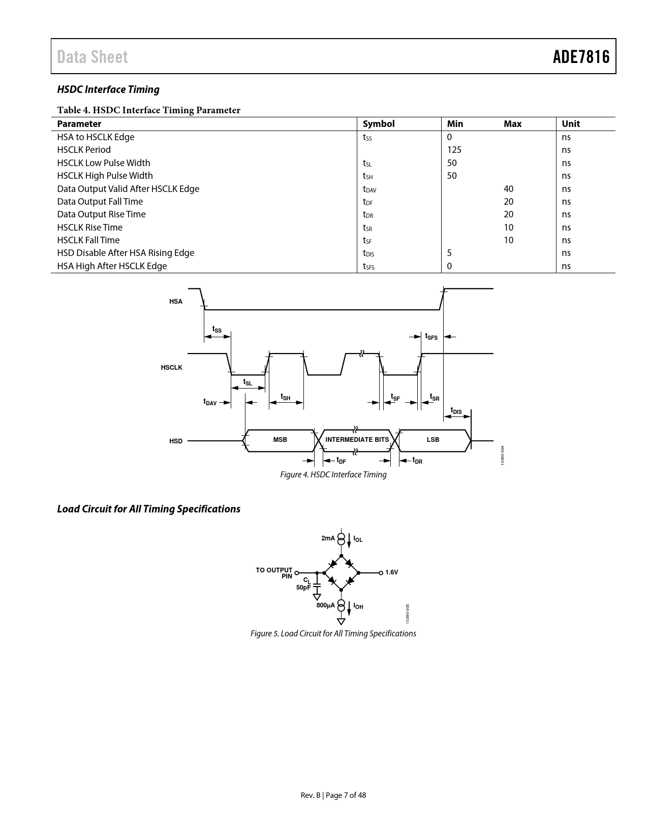Seiten / Seite48 / 7 — Data Sheet. ADE7816. HSDC Interface Timing. Table 4. HSDC Interface …