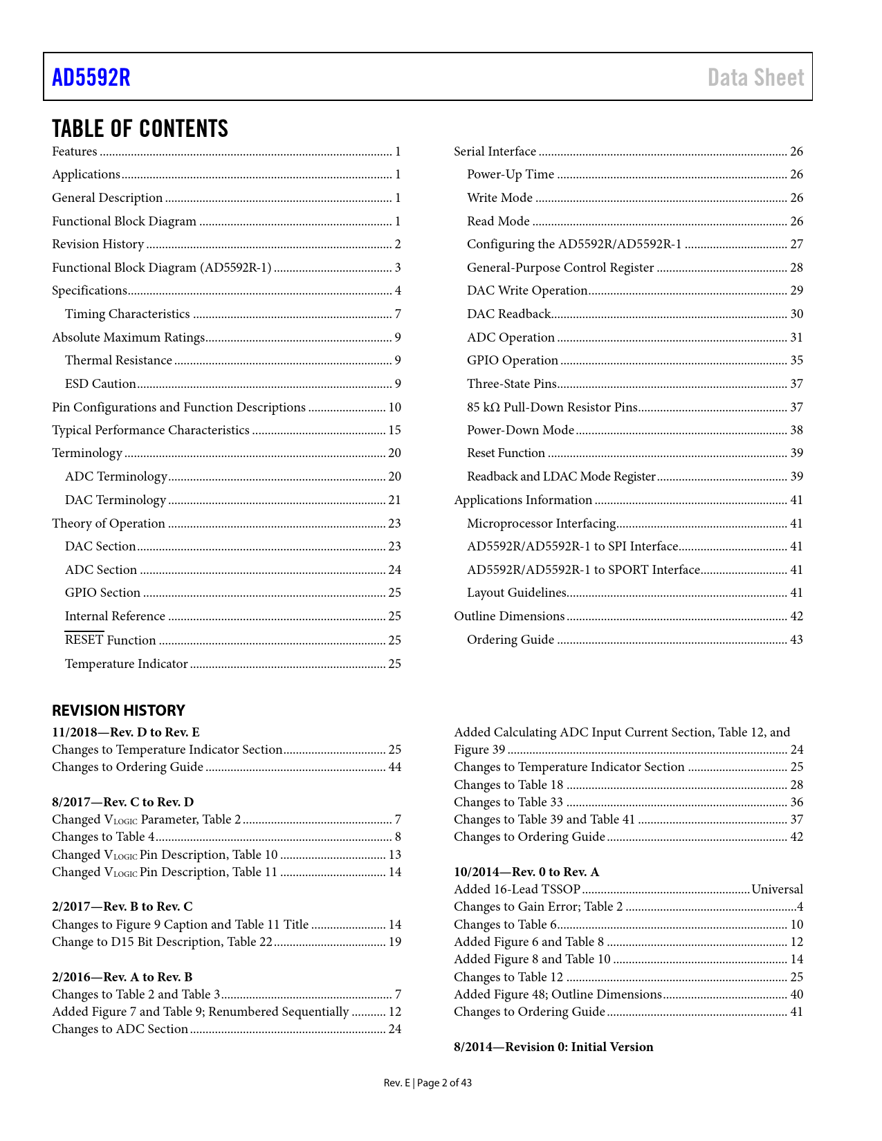 Seiten / Seite43 / 2 — AD5592R. Data Sheet. TABLE OF CONTENTS. REVISION HISTORY 11/2018—Rev. D …