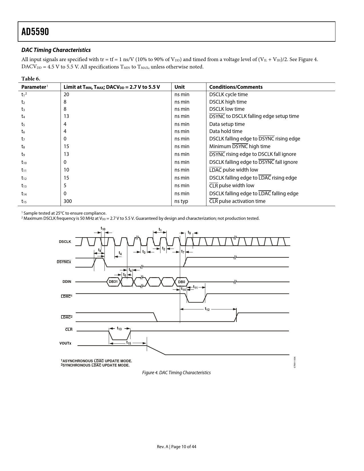 AD5590 DAC Timing Characteristics Table 6 Parameter Limit at TMIN, TMAX; DACVDD = 2.7 V to 5.5 V Unit Conditions/Comments