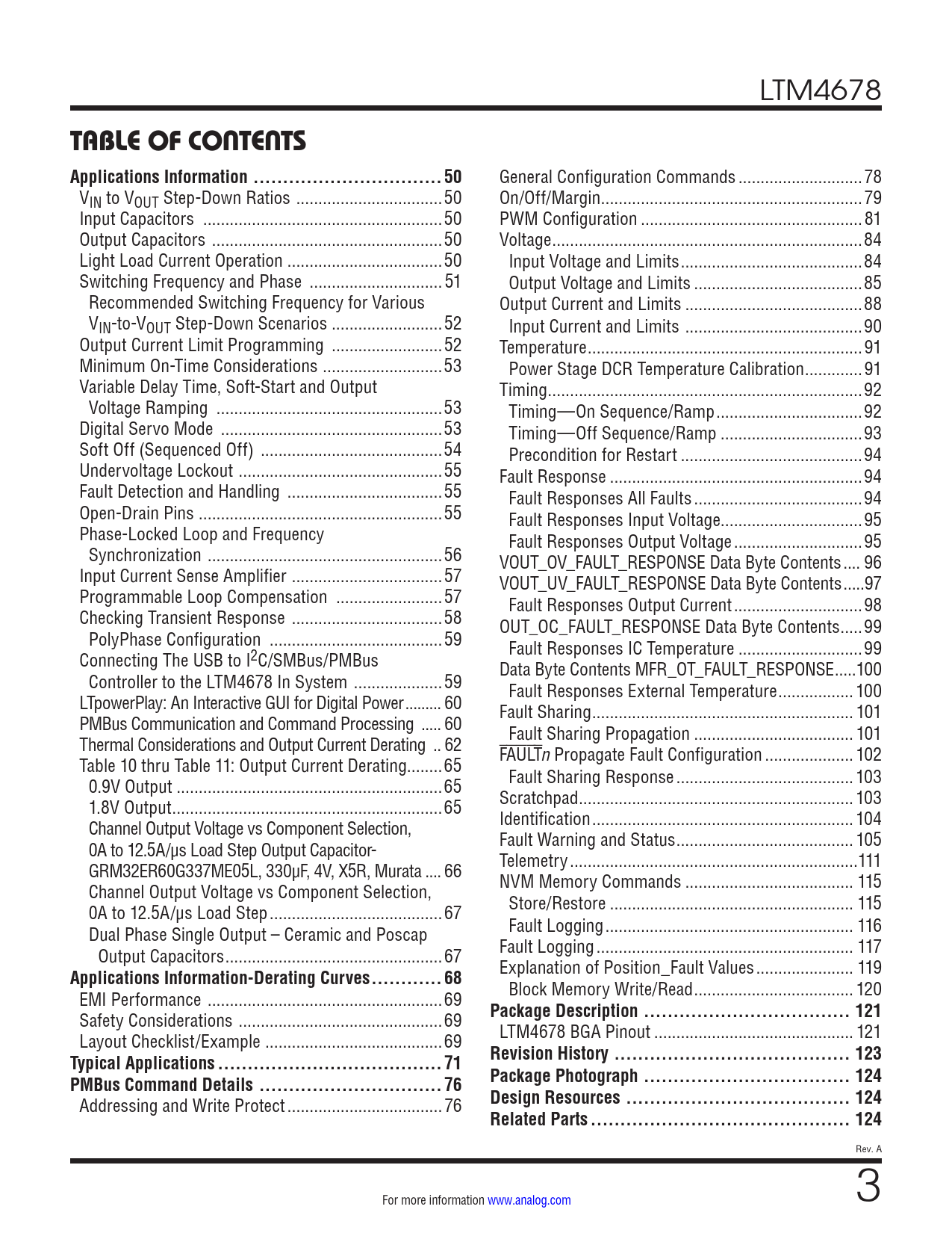 TABLE OF CONTENTS Applications Information ..50. Applications Information-Derating Curves ..68. Package Description ... 121