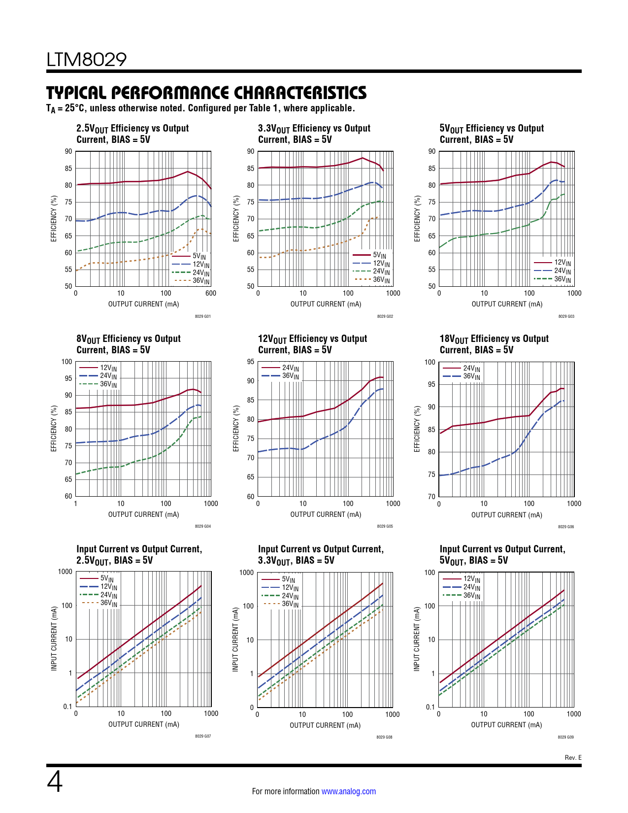 1000 1000 100 5VIN 5VIN 12VIN 12VIN 12VIN 24VIN 24VIN 24VIN 36VIN 100 36VIN 100 36VIN 100 10 10 10 INPUT CURRENT (mA) 1 INPUT CURRENT (mA) 1 INPUT CURRENT (mA) 1 0.1 0 0.1 0 10 100 1000 0 10 100 1000 0 10 100 1000 OUTPUT CURRENT (mA) OUTPUT CURRENT (mA) OUTPUT CURRENT (mA) 8029 G07 8029 G08 8029 G09 Rev. E 4 For more information www.analog.com Document Outline Features Applications Typical Application Description Absolute Maximum Ratings Order Information Pin Configuration Electrical Characteristics Typical Performance Characteristics Pin Functions Block Diagram Operation Applications Information Typical Application Package Description Revision History Package Photo Design Resources Related Parts