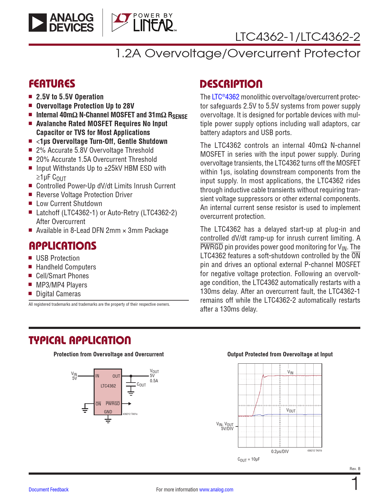 Datasheet LTC4362-1, LTC4362-2 Analog Devices, Revision: B