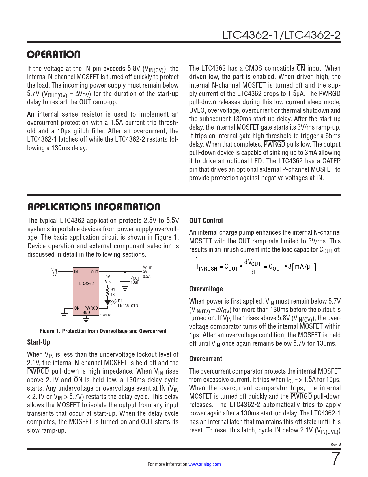 OPERATION. APPLICATIONS INFORMATION. OUT Control. Overvoltage. Figure 1. Protection from Overvoltage and Overcurrent. Start-Up