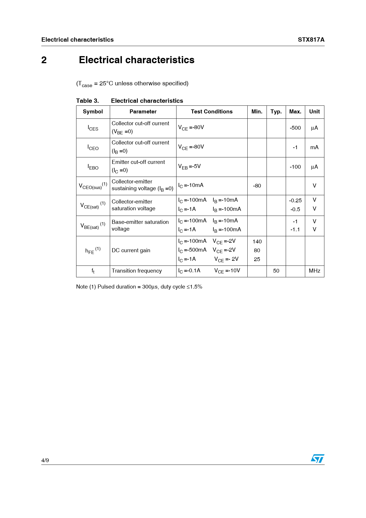 Electrical characteristics STX817A 2 Electrical characteristics