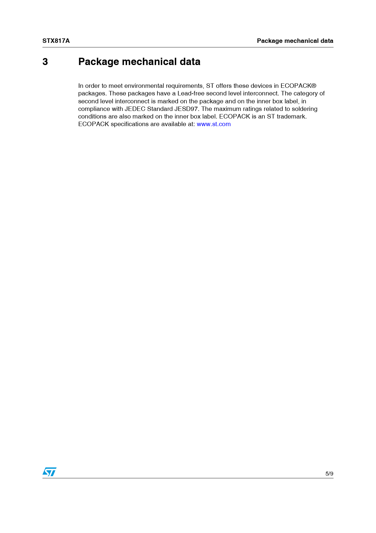 Seiten / Seite9 / 5 — STX817A. Package mechanical data. 3 Package. mechanical. data