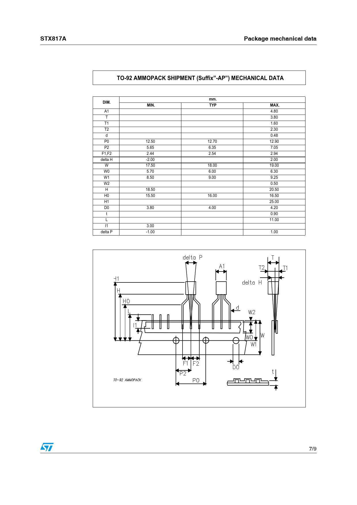 | Seiten / Seite | 9 / 7 — STX817A. Package mechanical data. TO-92 AMMOPACK SHIPMENT (Suffix”-AP”) … |